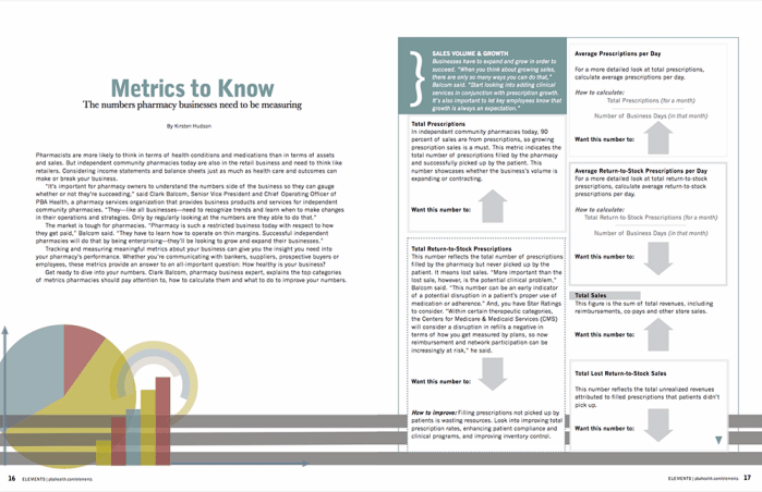 For this feature story for the March 2015 issue, my vision was to create a more technical-style article on the metrics independent community pharmacy owners need to know to run their businesses better. The chief operating officer at PBA Health provided me with some background and a lot of numbers and formulas. I transformed those numbers and formulas into an infographic-inspired article that made sense with the magazine’s style and also showcased the technical information in an engaging way. This article ventured from my typical writing style, but I think that’s what I like about it so much.