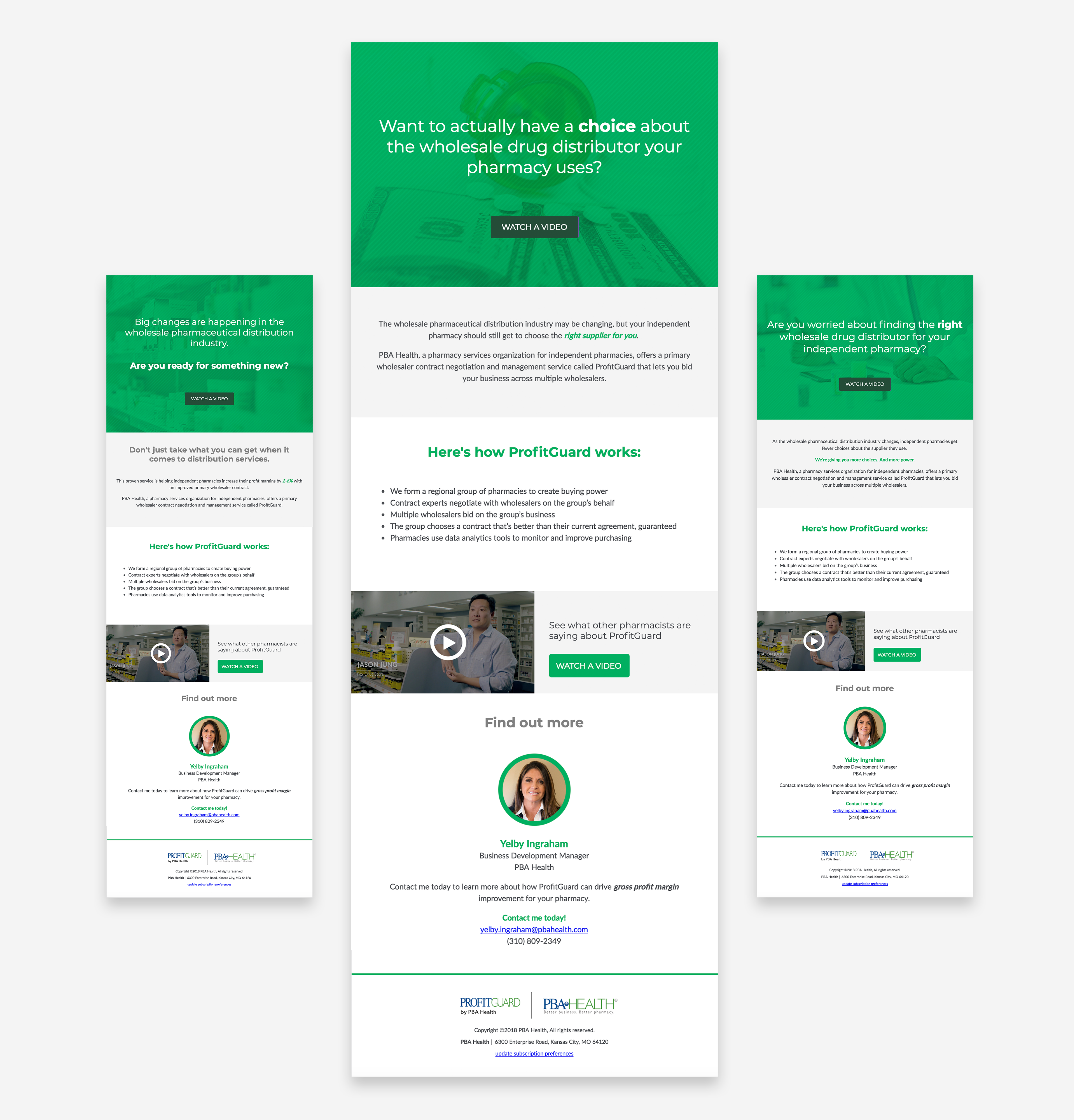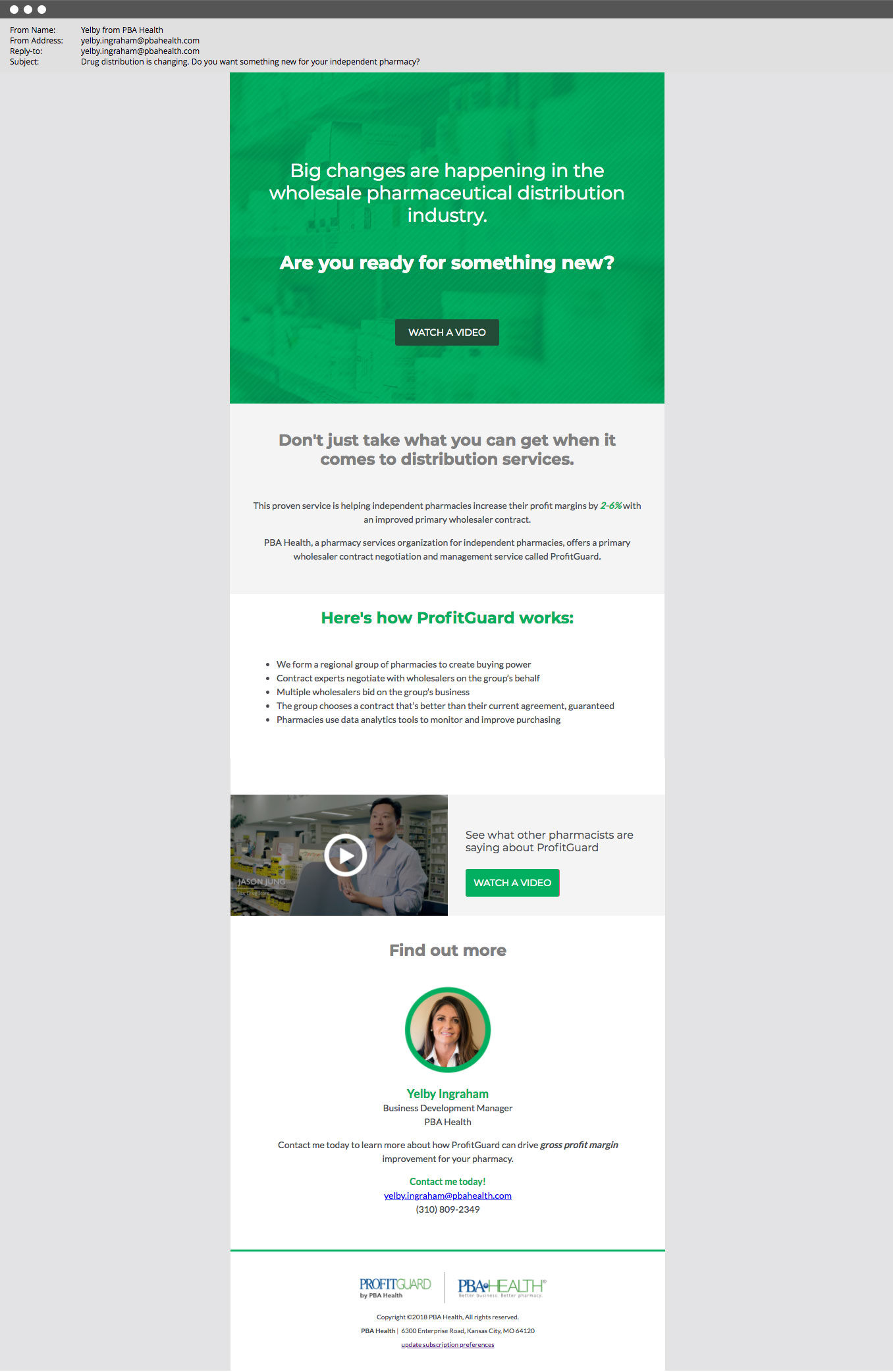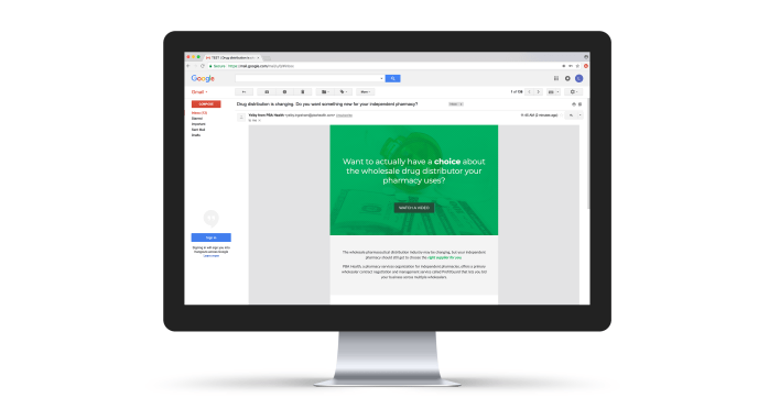 This email campaign introduces a service called ProfitGuard to independent pharmacy owners in a target market area. The aim was to pique interest so the sales representative could reinforce the message on her in-person visits to the pharmacies.