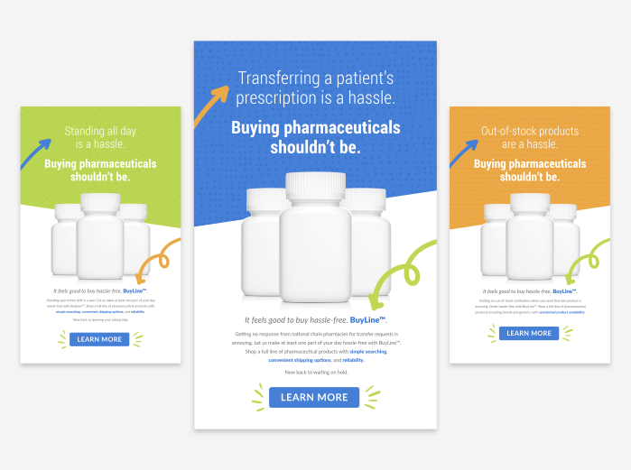 I spent a lot of time researching problems that would resonate with pharmacists to create compelling headlines. For example, one of the headlines is “Reject code 76 is a hassle. Buying pharmaceuticals shouldn’t be.” That doesn’t mean much to you or me. But this concept resonates with pharmacists, who have to call a patient’s health insurance company to resolve this insurance claim rejection.